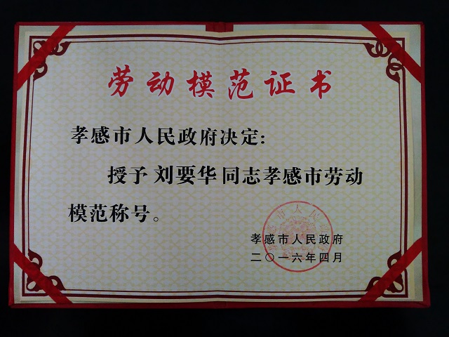 “五一國際勞動節(jié)”前夕,我市召開2016年勞動模范表彰大會,隆重表彰全市各行各業(yè)、各條戰(zhàn)線上涌現(xiàn)出來的30名勞動模范。在此次大會上,我公司劉要華同志榮膺“孝感市勞動模范”稱號,并獲頒獎?wù)?。這也是我公司員工首次獲得這一個人榮譽。