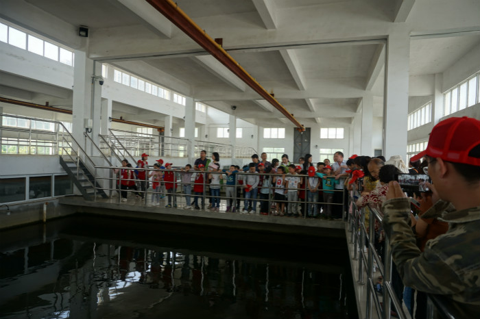來到寬闊狹長的平流沉淀池邊,小記者們親眼看到在高分子聚合氯化鋁的作用下,原本渾濁的源水一點點變得清澈透明。在過濾車間,他們認(rèn)真觀察濾池反沖洗和水質(zhì)變化的過程;走進(jìn)送水泵房,他們在水泵機(jī)組轟鳴的運行聲中,細(xì)心傾聽處理好的干凈自來水是如何送到千家萬戶的。