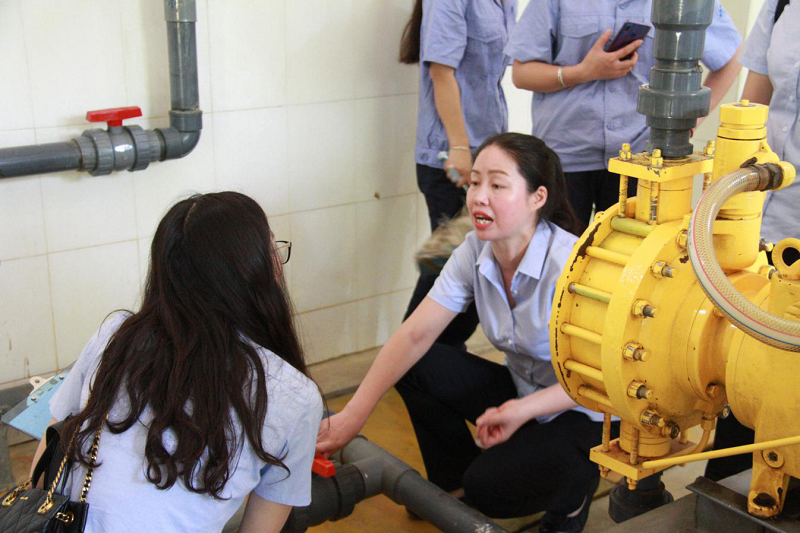 培訓(xùn)過程中,丁廠長(zhǎng)首先向大家介紹了三水廠的基本情況和水質(zhì)安全的重要性,隨后帶領(lǐng)大家來到凈化池。通過現(xiàn)場(chǎng)參觀,給水廠職工講解了凈化池的工作原理及基本工藝流程。理論知識(shí)授課完畢后,丁廠長(zhǎng)還帶領(lǐng)大家來到車間,對(duì)各種設(shè)備設(shè)施進(jìn)行了現(xiàn)場(chǎng)講解,并對(duì)空壓機(jī)設(shè)備導(dǎo)換、加藥泵設(shè)備導(dǎo)換進(jìn)行了實(shí)地操練 。